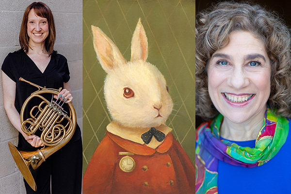 In an effort to make it easy for couples with young children to attend Simone Dinnerstein’s Concert at the Town Hall, Music Mountain is presenting a Children’s Program at the same time next door, at the Library, featuring A Visit from the White Rabbit, a piece for French horn and narrator by Eric McIntyre, featuring Emily Boyer, horn, and Naomi Lewin, narrator.